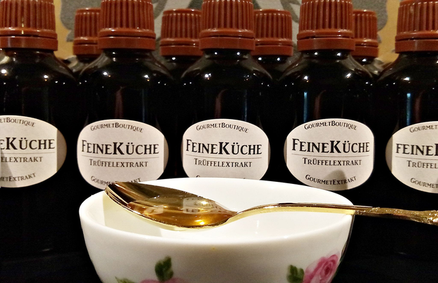 Unser Trüffelextrakt eignet sich hervorragend zum Aromatisieren von Speisen und Olivenöl.